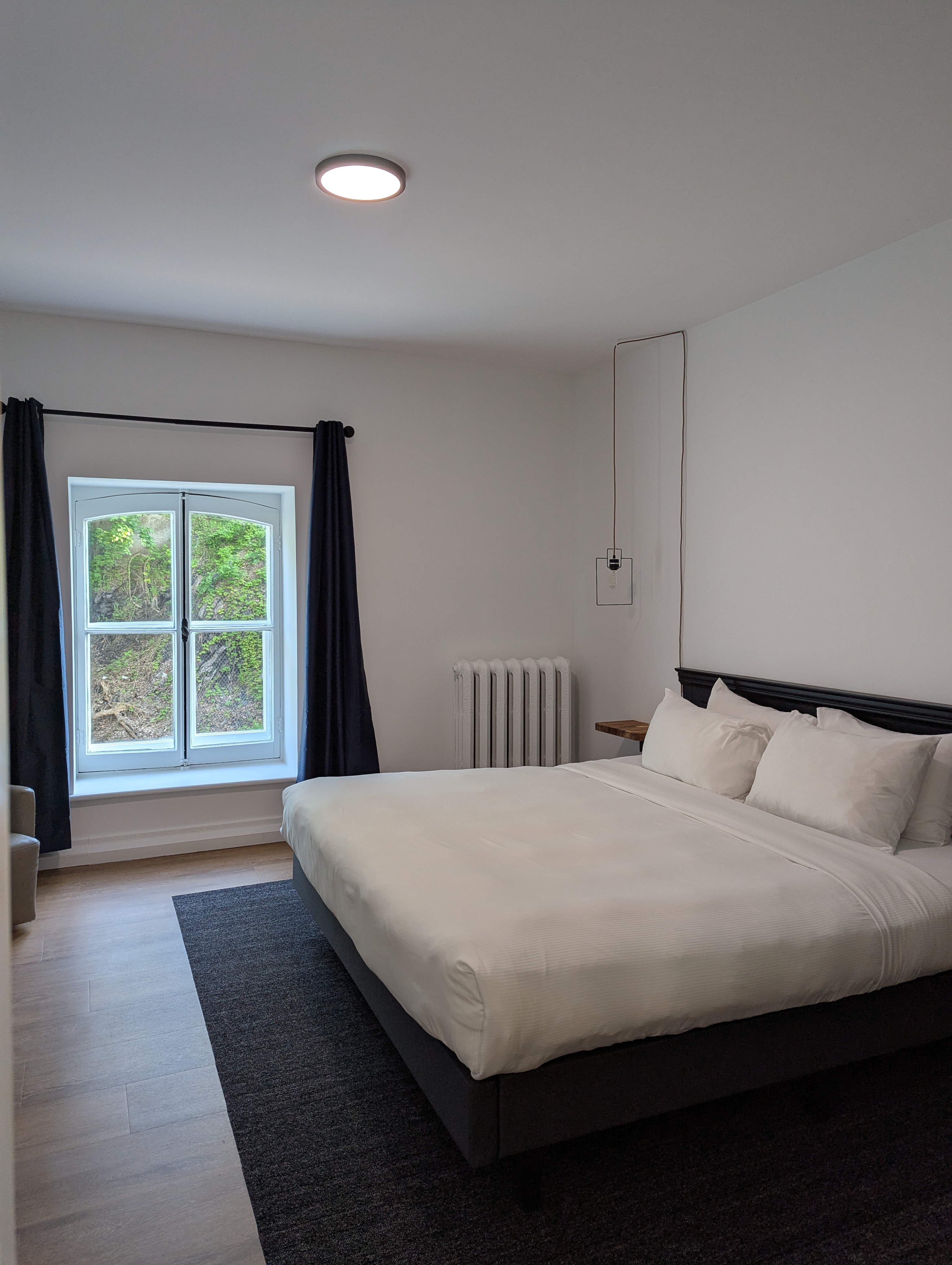 방 크기 및 구조는 일반 룸보다는 조금 크고 스위트룸보단 작은, 중간정도의 크기로 생각하시면 되요. 바닥은 마룻바닥, 침대 주변에만 얇은 러그가 있는 점도 센스있는 배치라고 생각했어요. 천장이 일반적인 방보다 층고가 있어서 실제 크기보다 더 개방감 있는 건 덤이에요.
