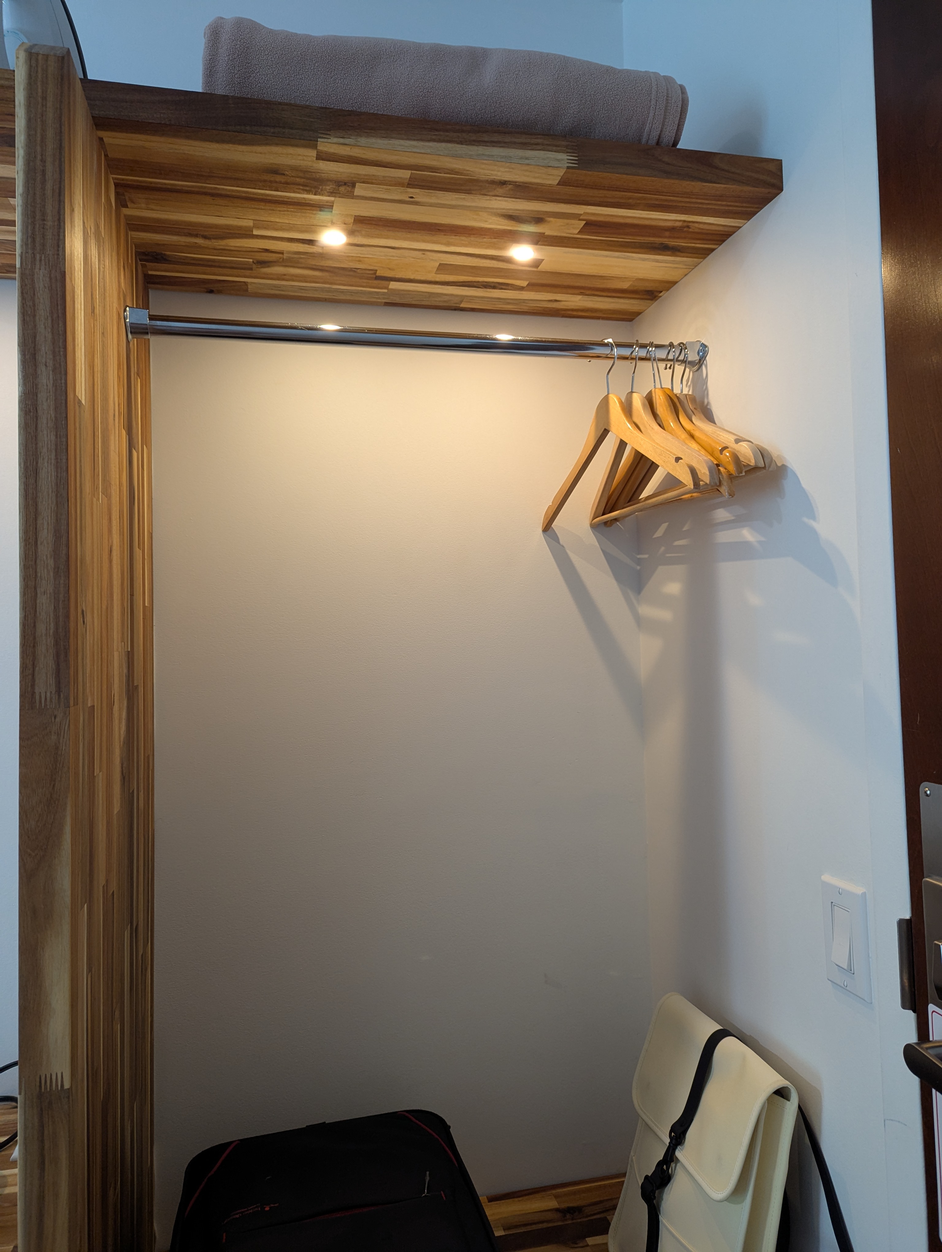 다만 화장실은 북미 호텔 치고는 매우 작은 편이에요. 수건을 넉넉하게 받아도 보관할 공간이 애매한 점은 좀 아쉬웠어요. 화장실 밖이어도 좋으니 이케아 철재 수납장 하나만 있어도 불편이 덜 했을 것 같다는 생각이 듭니다.